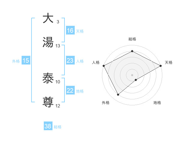大湯 泰尊さんの総格は38画の4点!