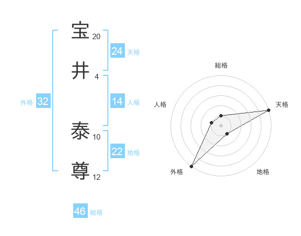 宝井 泰尊さんの天格は24画の5点!