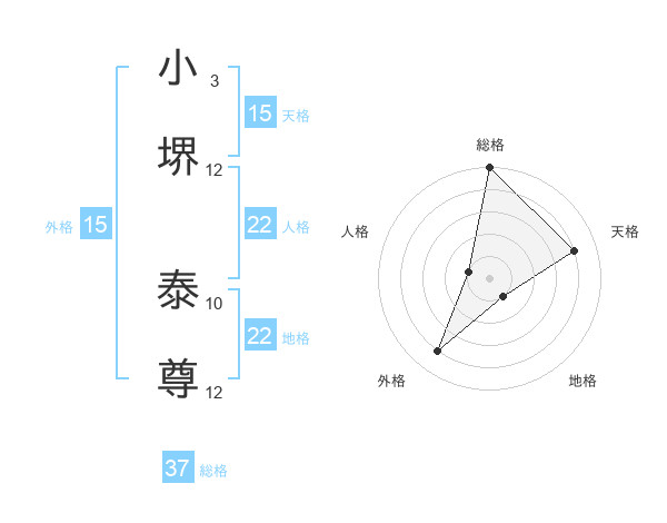 小堺 泰尊さんの総格は37画の5点!