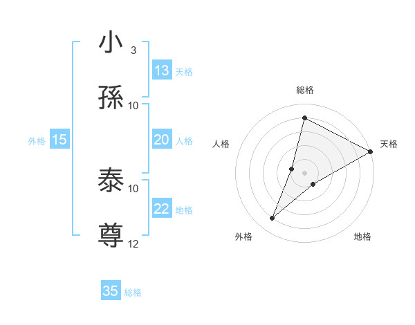 小孫 泰尊さんを姓名の画数から五運を鑑定