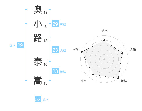 奥小路 泰嵩さんを姓名の画数から五運を鑑定
