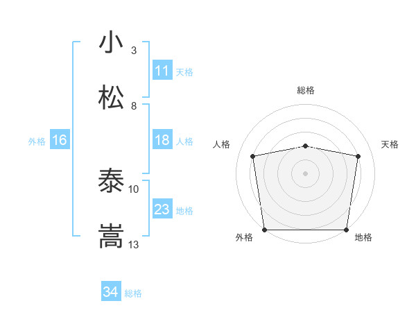 小松 泰嵩さんの総格は34画の2点!