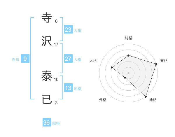 寺沢 泰已さんの天格は23画の5点!