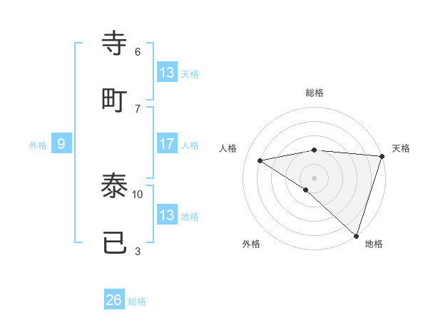寺町 泰已さんの天格は13画の5点!