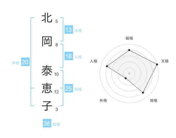 北岡 泰恵子さんを姓名の画数から五運を鑑定
