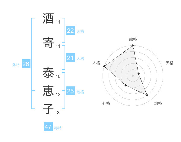 酒寄 泰恵子さんを姓名の画数から五運を鑑定