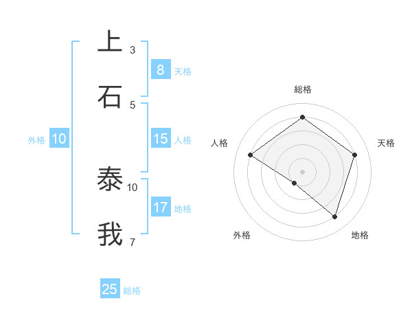 上石 泰我さんの総格は25画の4点!