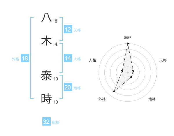 八木 泰時さんの総格は32画の5点!