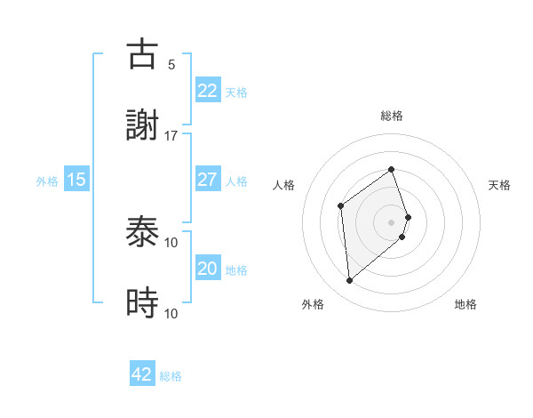 古謝 泰時さんを姓名の画数から五運を鑑定