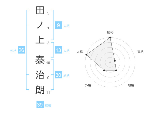 田ノ上 泰治朗さんを姓名の画数から五運を鑑定