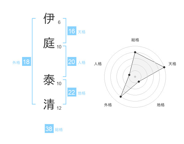 伊庭 泰清さんを姓名の画数から五運を鑑定