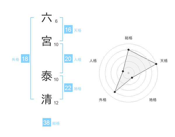 六宮 泰清さんの総格は38画の4点!