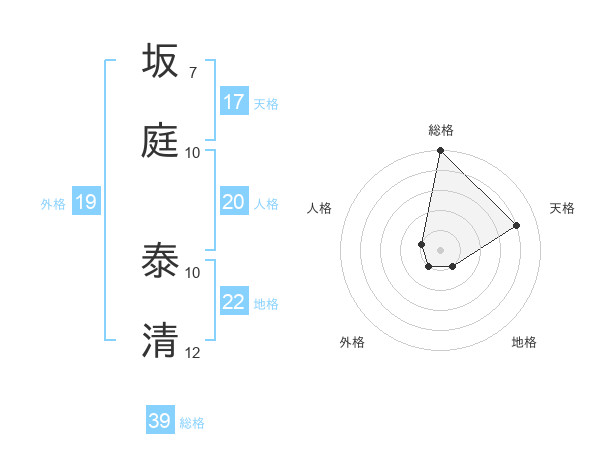 坂庭 泰清さんを姓名の画数から五運を鑑定