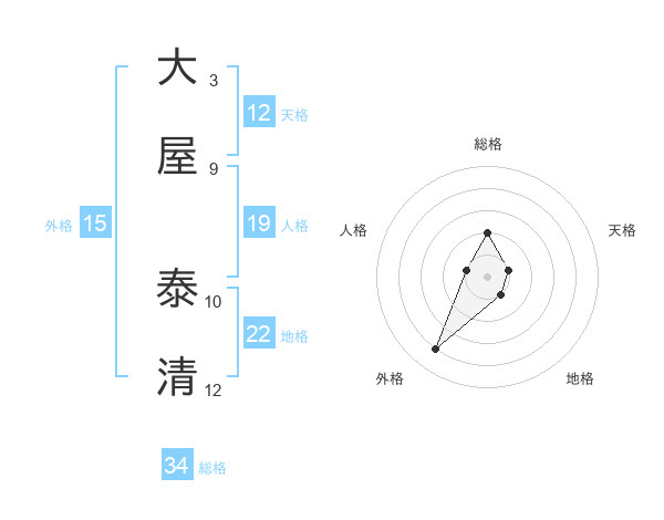 大屋 泰清さんを姓名の画数から五運を鑑定