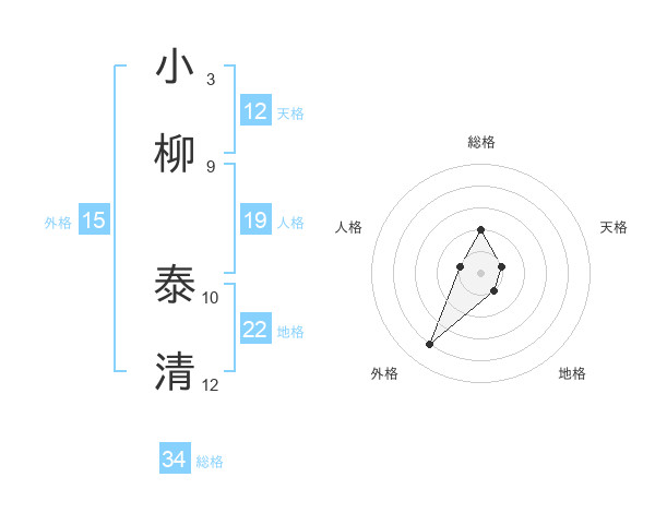 小柳 泰清さんの天格は12画の1点!