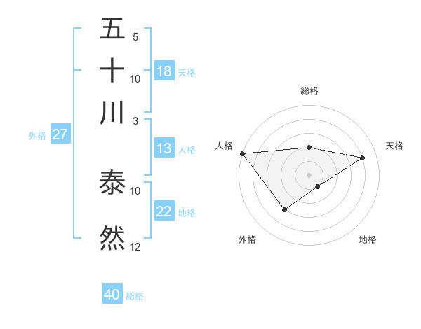 五十川 泰然さんを姓名の画数から五運を鑑定