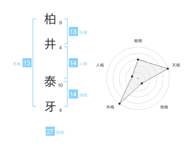 柏井 泰牙さんの天格は13画の5点!