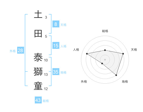 土田 泰獅童さんを姓名の画数から五運を鑑定