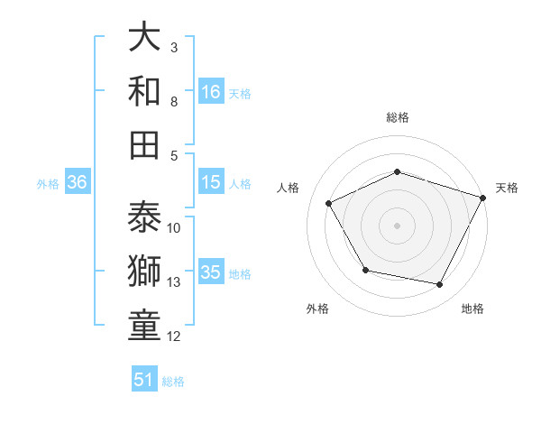 大和田 泰獅童さんを姓名の画数から五運を鑑定
