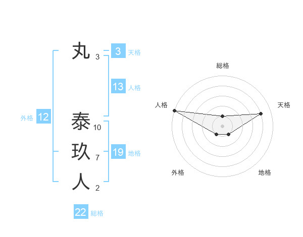 丸 泰玖人さんの総格は22画の1点