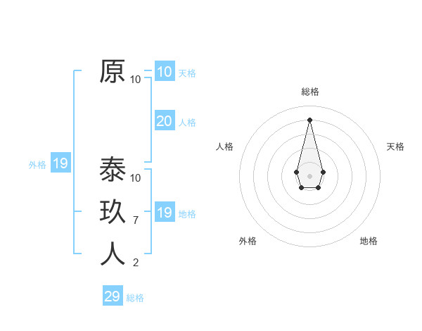 原 泰玖人さんを姓名の画数から五運を鑑定