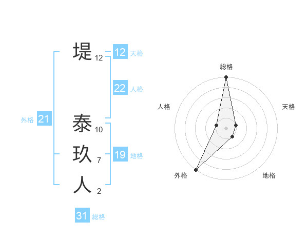 堤 泰玖人さんの総格は31画の5点!