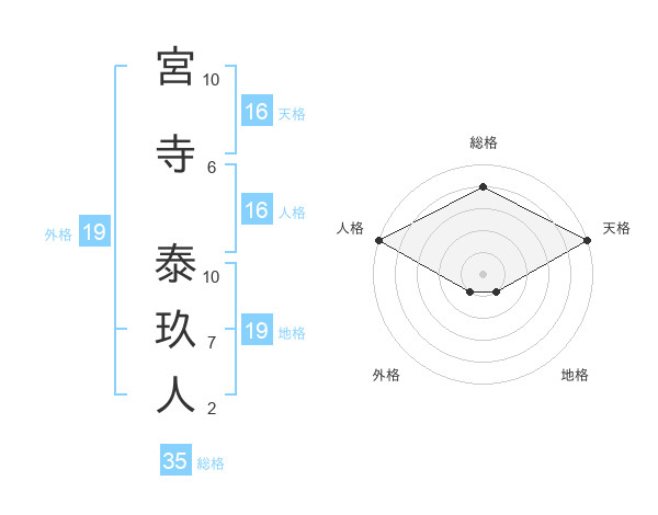宮寺 泰玖人さんを姓名の画数から五運を鑑定