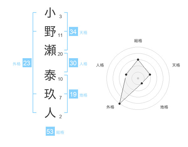 小野瀬 泰玖人さんを姓名の画数から五運を鑑定