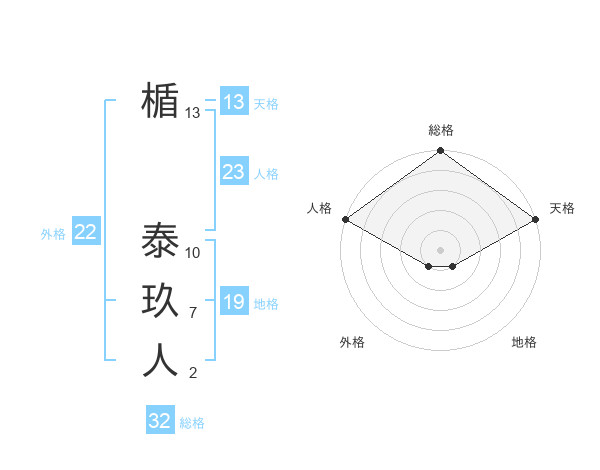 楯 泰玖人さんの総格は32画の5点!