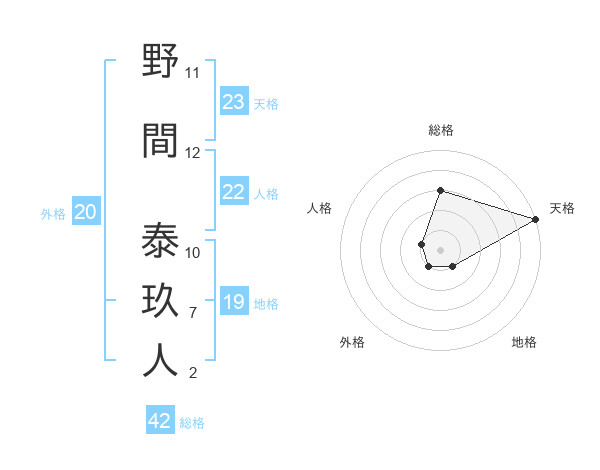 野間 泰玖人さんを姓名の画数から五運を鑑定