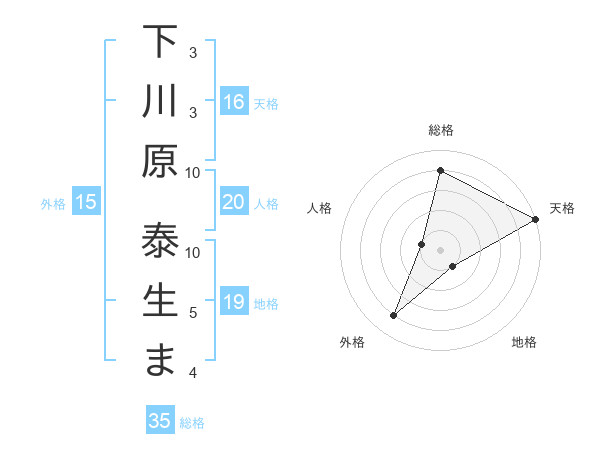 下川原 泰生まさんを姓名の画数から五運を鑑定