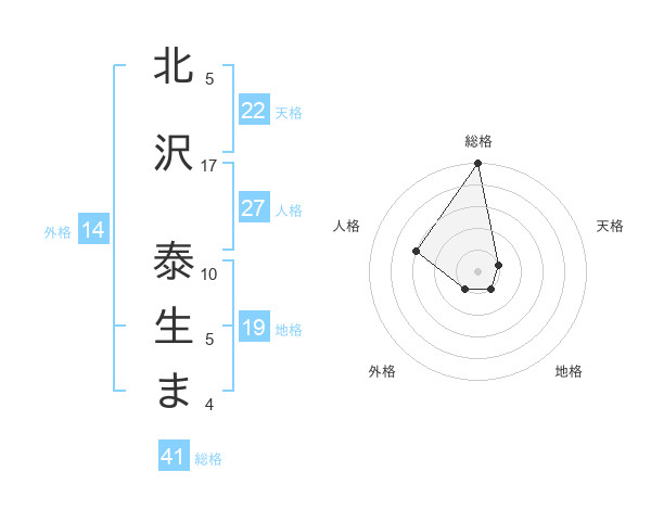 北沢 泰生まさんを姓名の画数から五運を鑑定