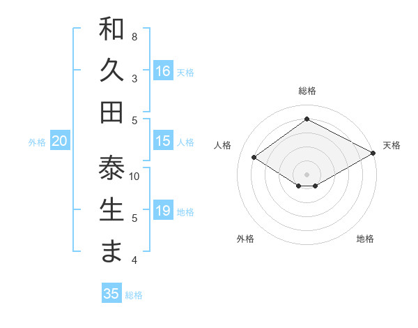 和久田 泰生まさんを姓名の画数から五運を鑑定