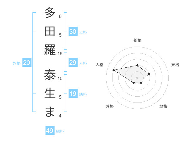 多田羅 泰生まさんを姓名の画数から五運を鑑定