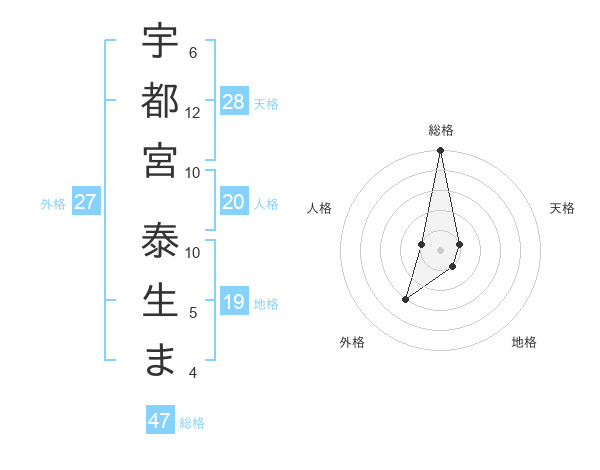 宇都宮 泰生まさんを姓名の画数から五運を鑑定