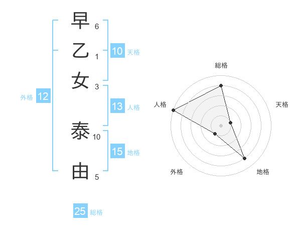 早乙女 泰由さんの総格は25画の4点!