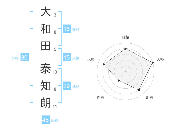 大和田 泰知朗さんを姓名の画数から五運を鑑定