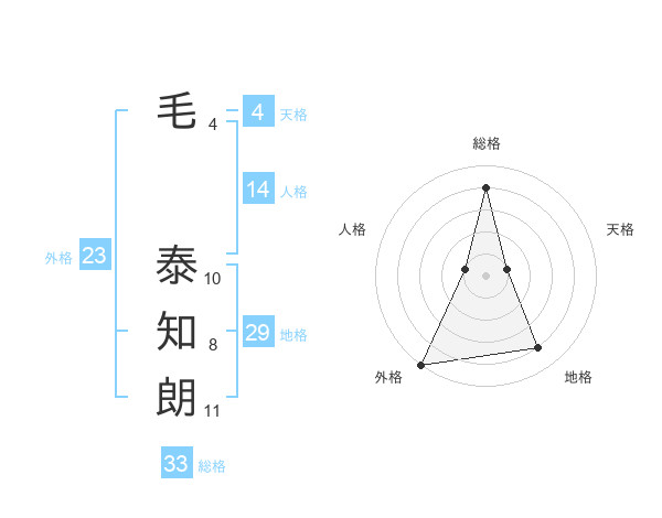 毛 泰知朗さんの外格は23画の5点!