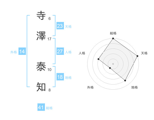 寺澤 泰知さんを姓名の画数から五運を鑑定