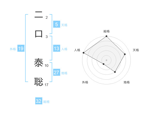 二口 泰聡さんを姓名の画数から五運を鑑定