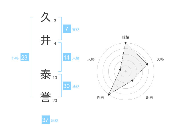久井 泰誉さんの総格は37画の5点!