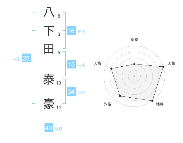 八下田 泰豪さんを姓名の画数から五運を鑑定