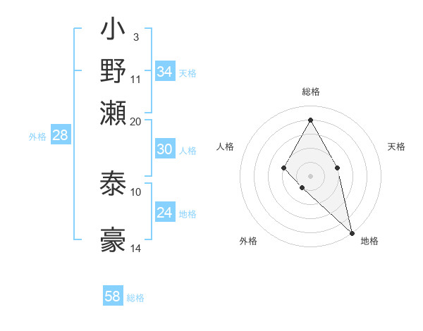 小野瀬 泰豪さんを姓名の画数から五運を鑑定