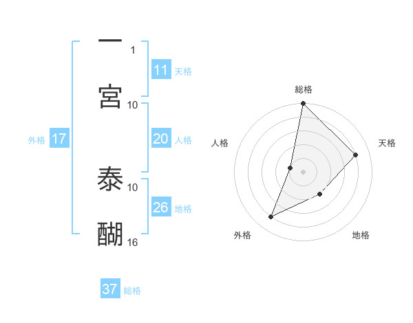 一宮 泰醐さんを姓名の画数から五運を鑑定