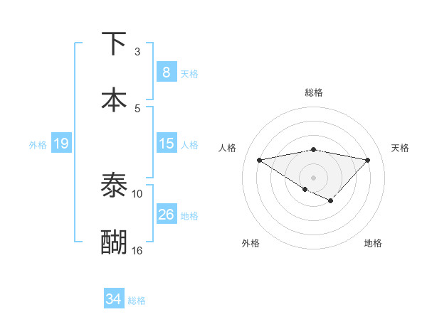 下本 泰醐さんの天格は8画の4点!