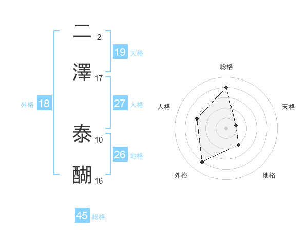 二澤 泰醐さんの総格は45画の4点!
