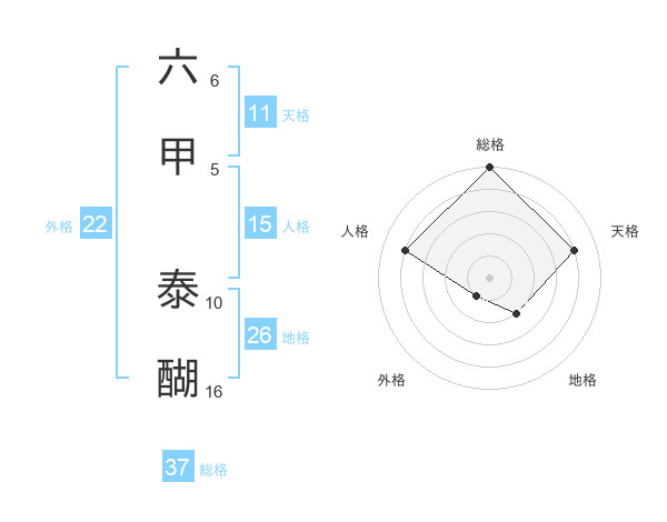 六甲 泰醐さんの総格は37画の5点!
