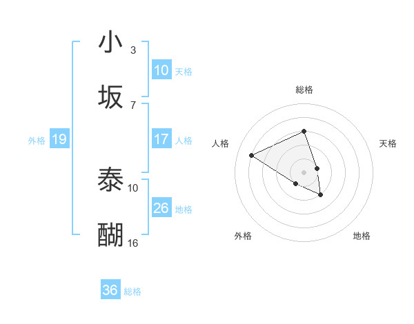 小坂 泰醐さんを姓名の画数から五運を鑑定