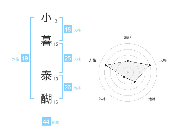小暮 泰醐さんを姓名の画数から五運を鑑定
