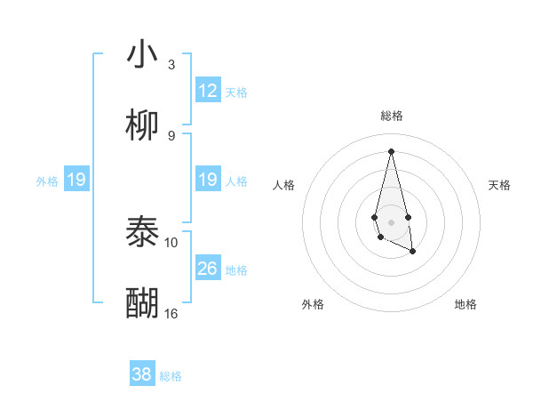 小柳 泰醐さんの総格は38画の4点!